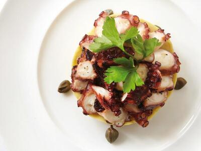 Κορυφαίο πιάτο: Μπακαλιάρος a la plancha (αναφορά στις αγκινάρες αλά πολίτα )