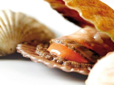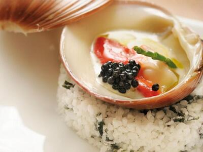 Κορυφαίο πιάτο: Αχνιστά χτένια με φύκια και βινεγκρέτ με κόκκινο βασιλικό και yuzu