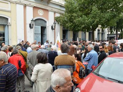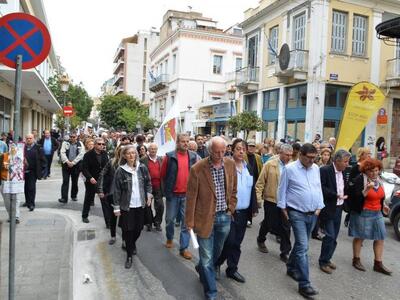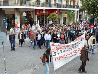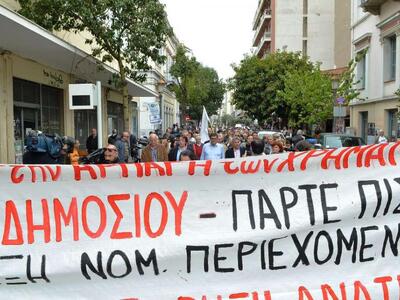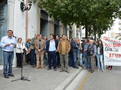 Συγκέντρωση διαμαρτυρίας μπροστά από το Δημαρχείο και πορεία στο κέντρο της πόλης έγινε νωρίτερα, με απαίτηση την άμεση και οριστική απόσυρση της Πράξη Νομοθετικού Περιεχομένου, -η οποία συζητείται και ψηφίζεται σήμερα στην Βουλή- και τα διαθέσιμα στα ταμεία του Δήμου, να παραμείνουν στη θέση τους.