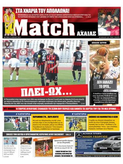 Ρεπορτάζ και δηλώσεις στην σημερινή Match Αχαϊας - Δείτε το πρωτοσέλιδο