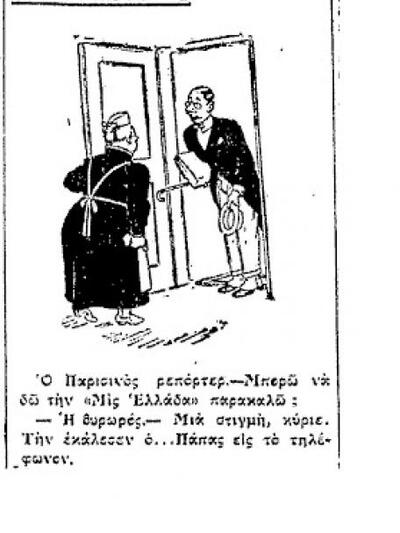 Σκίτσο του Φωκίωνα Δημητριάδη που δημοσιεύτηκε στην "Πρόοδο των Πατρών" στις 13 Ιανουρίου του 1930
