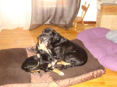 "Τώρα η Σαριτέ ζει μαζί μου, η κόρη της Ροζέτα υιοθετήθηκε από μια υπέροχη οικογένεια στη Γερμανία (δείτε στις φωτό κοιμάται μαζί με το κοριτσάκι της οικογένειας), και ο Μάγκας (ο καφέ σκύλος με τη μπλούζα) πέθανε λίγες μέρες μετά καθώς ήταν πολύ άρρωστος αφού φιλοξενήθηκε τις δύσκολες μέρες από κάποια κυρία που πάντα θα θαυμάζω για τον αλτρουισμό της.