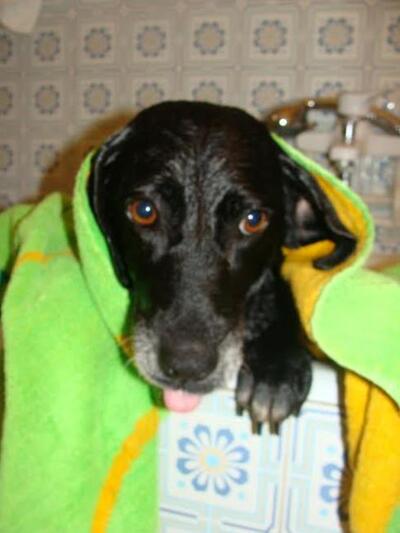 Η Σαριτέ πνιγόταν ,έβγαζε αφρούς από το στόμα, λιπόθυμη. Τη λύσανε , της έριξαν πάνω της νερό κι αμέσως μεταφέρθηκε σε κτηνιατρείο. Οι πατούσες της είχαν ξεκολλήσει και η κοιλιά της ήταν σκισμένη και γδαρμένη παντού. Τον πρώτο καιρό ήταν βεβαίως αντικοινωνική και δεν πλησιαζόταν από άνθρωπο!
