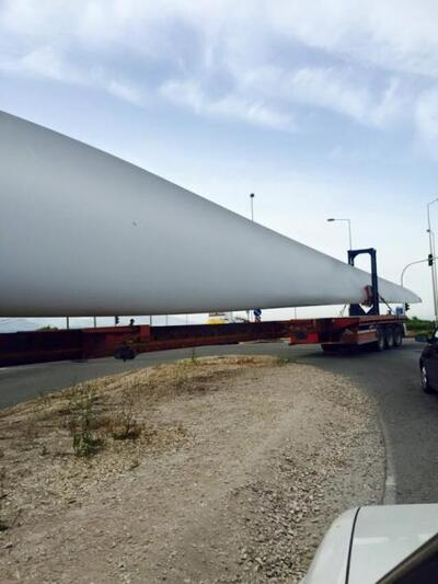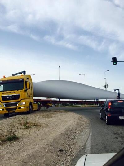 Πάτρα: Φορτηγό όχημα μεταφέρει τεράστιο έλικα ανεμογεννήτριας - ΦΩΤΟ