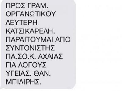Την παραίτησή του από τη θέση του Συντονιστή του ΠΑΣΟΚ Αχαϊας υπέβαλε στον Γραμματέα Οργανωτικού Λευτέρη Κατσικαρέλη ο Θανάσης Μπιλίρης. Ο κ. Μπιλίρης επικαλέστηκε λόγους υγείας.