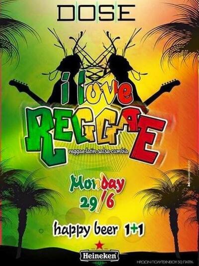 Το DOSE ξέρει πολύ καλά πως να μεταμορφώνεται και την Δευτέρα 29/6 αγαπάμε και ακούμε REGGAE. Μοναδικοί ήχοι Salsa, Latin, Reggae και Cumbia, για τα.. μάτια σας μόνο!