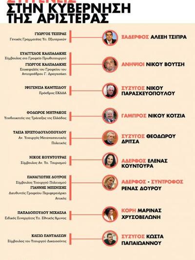 Ο γόνος της οικογένειας των επαγγελματιών της πολιτικής Κυριάκος Μητσοτάκης ανέβασε στο Facebook γράφημα με τίτλο «Συγγενείς στην κυβέρνηση της Αριστεράς» και δείχνει σε ποιες θέσεις έχουν τοποθετηθεί συγγενείς κυβερνητικών στελεχών.