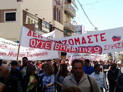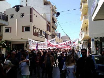 «Αυτή η Πρωτομαγιά δεν είναι μια ακόμα διαδήλωση. Δηλώνουμε την αγωνιστική ετοιμότητά μας, την απόφασή μας να υπερασπίσουμε το μέλλον το δικό μας και των παιδιών μας. Οι εργαζόμενοι δεν θα υποδεχτούν με αδράνεια, φόβο και υποχώρηση τα νέα μνημόνια όπως και να τα ονομάσουν, τα νέα δεινά στη ζωή τους για τα κέρδη των μονοπωλίων.
