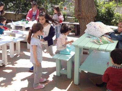 Από τις 12.30 το μεσημέρι έως τις 5 το απόγευμα, μέρος της αυλής μετατρέπεται σε ένα χώρο ευχάριστης και δημιουργικής απασχόλησης των παιδιών.