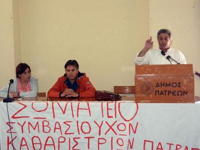 Στην συνέλευση των εργαζομένων καθαριστριών ΙΔΟΧ παρεβρέθησαν και εξέφρασαν την ενεργή στήριξη στον αγώνα τους , το κλαδικό συνδικάτο των ΟΤΑ με απόφαση διοικητικού συμβουλίου, το σωματείο καθαριότητας του Δήμου Πατρέων , το σωματείο των υπαλλήλων και το Σωματείο των οδηγών θεωρώντας ότι το πρόβλημα των εργαζομένων καθαριστριών πρέπει να γίνει πρόβλημα όλων των εργαζομένων του κλάδου και οι διεκδικήσεις των καθαριστριών ,διεκδικήσεις όλου του κλάδου, κόντρα και σε αντιπαράθεση με τη λογική και τις μεθοδεύσεις όλων των κυβερνήσεων και της Ε.Ε. να αποσταθεροποιούν την εργασία, να γίνεται ο εργαζόμενος πάμφθηνος ,να τινάζονται στον αέρα ασφαλιστικά δικαιώματα, για να ανοίξει ο δρόμος να παραδοθούν τομείς του Δημοσίου στους ιδιώτες , στην κερδοσκοπία τους με εργαζομένους φτηνούς σκλάβους.