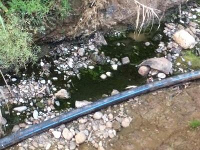 Τα «απόβλητα» αυτά είχαν έντονο πράσινο σκούρο χρώμα ενώ σε αρκετά σημεία το νερό ήταν μαύρο με συμπυκνωμένη υφή σαν λάσπη, ενώ παράλληλα η δυσοσμία ήταν έντονη. Παράλληλα, όπως σημειώνουν, σε άλλο σημείο το νερό βγαίνει γεμάτο με άσπρους αφρούς.
