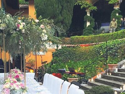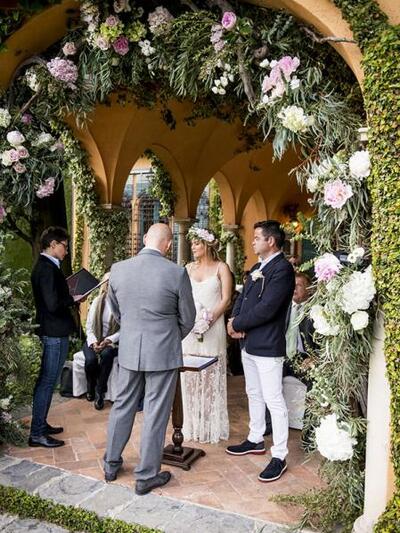 Η γαμήλια τελετή πραγματοποιήθηκε το απόγευμα του Σαββάτου. Λίγες ώρες νωρίτερα το προσωπικό είχε φροντίσει για τη μετατροπή της εισόδου της βίλας σε χώρο κατάλληλο για την ανταλλαγή των γαμήλιων όρκων.