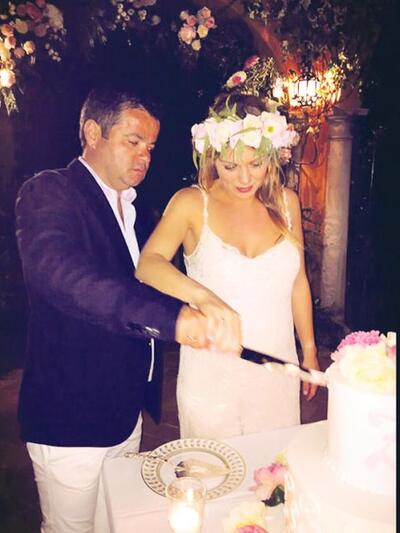 Η νύφη έφτασε μέσα σε ένα μικρό γραφικό σκάφος με το όνομα της βίλας, συνοδεία του πατέρα της και του αδελφού της, ενώ το ζευγάρι ένωσε με τα δεσμά του γάμου ένας πάστορας με μάρτυρες την αδελφή της, Ολγα Πάστρα, σχεδιάστρια κοσμημάτων, και τον αδελφό του γαμπρού, Νικόλα Φραντζέσκο, αρχιτέκτονα και κατασκευαστή πολυτελών κατοικιών στη Μύκονο και όχι μόνο.