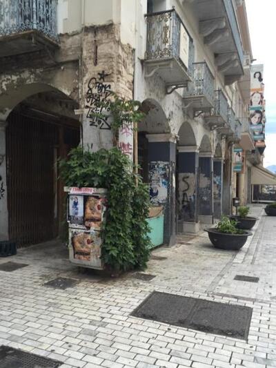 Το κερασάκι στην τούρτα αποτελεί το.. κοτετσόσυρμα που παραμένει στο πεζοδρόμιο στη συμβολή της Αγ Νικολάου με τη Ρήγα Φεραίου. Στο πιο κεντρικό σημείο της πόλης. Για να μην περνούν οι πολίτες κάτω απο διατηρητέο και την οροφή που κρέμεται πάνω απο αυτό. Πρόσφατα έγιναν εργασίες στο σημείο, το σύρμα ωστόσο παραμένει και προκαλεί αν μη τι άλλο μια κακή εικόνα στο κέντρο.