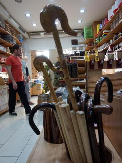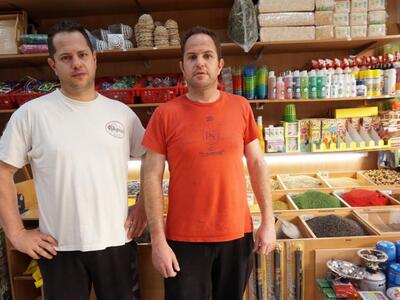 Ο Σταύρος και ο Φίλιππος Καλογερόπουλος, τα δύο αδέλφια που συνεχίζουν την επιχείρηση με τις σέσουλες ανά χείρας εξυπηρετούν τους πελάτες, με τους οποίους υπάρχει μια ζεστή, ανθρώπινη επαφή, μακριά από τις απρόσωπες αγορές των μεγάλων καταστημάτων ειδών διατροφής.