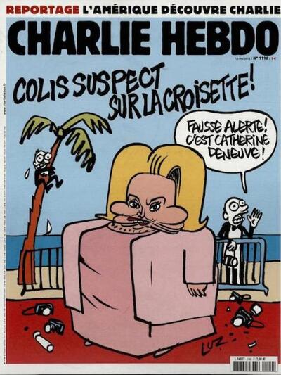 Η Κατρίν Ντενέβ, ίσως η τελευταία μεγάλη σταρ του ευρωπαϊκού σινεμά, απήντησε ακομπλεξάριστα σχολιάζοντας πως δεν έχει δει το περιοδικό αλλά πως «κανείς δεν περιμένει το Charlie Hebdo να έχει ένα εξώφυλλο σαν ένα περιοδικό μόδας. Ελπίζω να είναι αστείο. Ακόμη κι αν είναι κακόβουλο.»