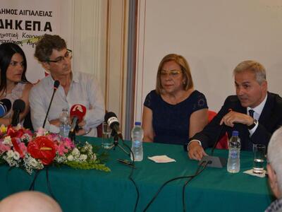 Στην συνέντευξη Τύπου στο πάνελ ήταν και ο Δήμαρχος Αιγιαλείας Θανάσης Παναγόπουλος και η Μαρία Τσουκαλά επικεφαλής της ΔΗ.Κ.ΕΠ.Α ενώ στις πρώτες σειρές των καθισμάτων ήταν παρούσα και η μητέρα του Πέγκυ ντυμένη κομψά στα κίτρινα. Ανάμεσα στους δημοσιογράφους και τους συμμετέχοντες της συνέντευξης Τύπου εντοπίσαμε και την Αιγιώτισσα βραβευμένη ηθοποιό Μαρία Καλλιμάνη με την αδελφή της, της γνωστής επιχειρηματικής οικογένειας Kallimanis καθώς και δύο ακόμη γυναίκες ηθοποιούς που μίλησαν με τον Αλεξάντερ Πέιν και φωτογραφήθηκαν μαζί του στο αρχοντικό Παναγιωτόπουλου.