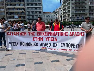 Σε εξέλιξη βρίσκεται αυτή την ώρα η συγκέντρωση διαμαρτυρίας που διοργανώνουν οι ταξικές δυνάμεις του ΠΑΜΕ στην πλατεία Γεωργίου της Πάτρας, για την προάσπιση του δημόσιου χαρακτήρα της Υγείας.