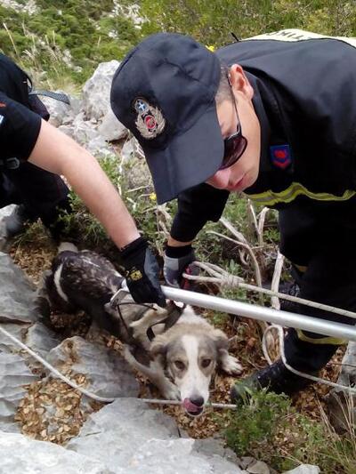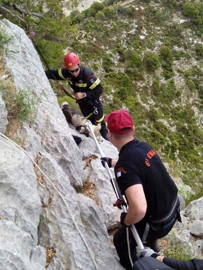 Ο ίδιος ενημέρωσε την Πυροσβεστική και στο σημείο έφτασαν ο Προϊστάμενος του Π.Κ Αρχαίας Ολυμπίας, Ανδρέας Γουργαριώτης με συνεργάτη του πυροσβέστη, προκειμένου να διασώσουν τον σκύλο. Χρειάστηκε να περπατήσουν 1,5 περίπου ώρα για να φτάσουν στην περιοχή, αλλά, παρά την προσπάθειά τους, δεν κατάφεραν να τον ανασύρουν, αφού το δύσβατο του σημείου δυσχέραινε την προσπάθειά τους. Το ζώο είχε εγκλωβιστεί σε απόκρημνα βράχια, σε βάθος 70 περίπου μέτρων που δεν μπορούσαν να πλησιάσουν. Γι’ αυτό κρίθηκε αναγκαία η συμβολή της 6ης ΕΜΑΚ Πατρών, 7 άνδρες της οποίας χθες το πρωί βρέθηκαν στο σημείο, μαζί με τον κ.Γουργαριώτη και έναν εθελοντή πυροσβέστη του Κλιμακίου της Ολυμπίας, που βοήθησαν στην προσπάθεια.