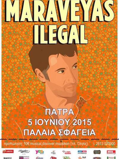 Ο Κωστής Μαραβέγιας (Μaraveyas Ilegal) λοιπόν θα βρεθεί στα Παλαιά Σφαγεία (πρώην Πολιτεία) την Παρασκευή 5 Ιουνίου 2015. Οι πόρτες ανοίγουν: 21:00. Η είσοδος κοστίζει 10 ευρώ. Οι σχετικές αφίσες ήδη φιγουράρουν σε κεντρικά σημεία της Πάτρας.