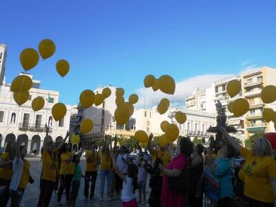 Το απόγευμα έγινε διανομή μπαλονιών με το λογότυπο της παγκόσμιας ημέρας ΣΚΠ καθώς και λουλουδιών στον κόσμο.