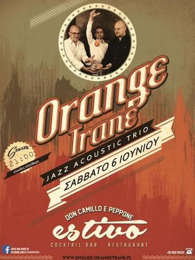 Οι Πολωνοί Orange Trane έρχονται στην χώρα μας για 3 συναυλίες. Το Orange Trane Acoustic Trio θα λάβει μέρος στο 15ο Athens Technopolis Jazz Festival την Πέμπτη 4 Ιουνίου και στο 13ο Preveza Jazz Festival την Παρασκευή 5 Ιουνίου. Λίγο πριν την αναχώρησή τους ο ήχος τους και στην πόλη μας. Το Σάββατο 6 Ιουνίου το Estivo-Cocktail Bar Restaurant τους υποδέχεται για ένα ταξίδι στην παραδοσιακή τζαζ με τη σύγχρονη fusion επιρροή.