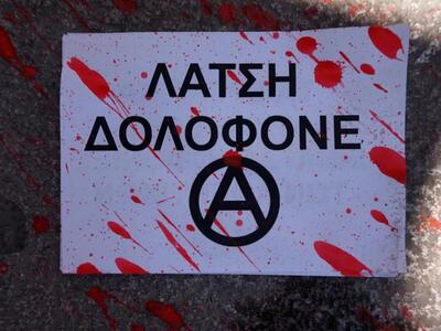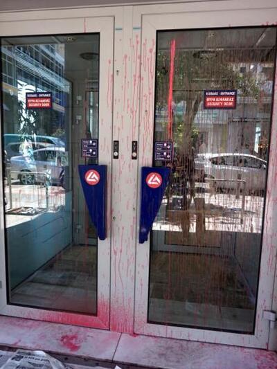 Οι άγνωστοι, κινήθηκαν ομαδικά προς το σημείο και πέταξαν μπογιές στην είσοδο.