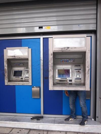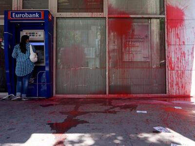 Στόχος κουκουλοφόρων έγινε νωρίτερα το τραπεζικό υποκατάστημα της Eurobank στη συμβολή των οδων Αγίου Ανδρέου και Πατρέως.