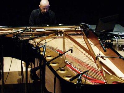 Σταύρος Γασπαράτος: Το “Expanded Piano” "πατάει" στην ιδέα του μηχανικά προετοιμασμένου πιάνου, που έγινε γνωστή από τα έργα του John Cage, και την μετασχηματίζει σε μια πρωτότυπη ηλεκτρονική μορφή. Ένα ακουστικό πιάνο καλωδιώνεται με διαφόρων τύπων μικρόφωνα που τοποθετούνται στο σώμα , τις χορδές και τον μηχανισμό του οργάνου. Με τη βοήθεια ενός υπολογιστή γίνεται ζωντανή επεξεργασία του σήματος των μικροφώνων και στην συνέχεια μοιράζεται σε μια surround πολυκάναλη εγκατάσταση, έτσι ώστε να δημιουργηθεί η αίσθηση ότι το κοινό βρίσκεται "μέσα" στο πιάνο.