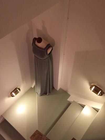 Στον πρώτο όροφο του μαγαζιού υπάρχουν τουριστικά είδη και προϊόντα για την γυναίκα και το παιδί. Φορέματα. Τσάντες, καπέλα, παπούτσια κ.α φτιαγμένα αποκλειστικά από Έλληνες.