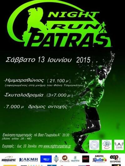 Με ιδιαίτερο ενδιαφέρον αναμένεται ο 1ος Νυχτερινός Ημιμαραθώνιος – Νight Run Patras που θα λάβει χώρα αυτό το Σάββατο 13 Ιουνίου την ώρα της δύσης του ήλιου και θα είναι αφιερωμένος στην μνήμη του σπουδαίου αθλητή μαραθωνοδρόμου, του αγαπητού σε όλους Φάνη Τσιμιγκάτου, ο οποίος έφυγε από τη ζωή στα τέλη Απριλίου 2015 μετά από χρόνια μάχη με τον καρκίνο, σε ηλικία 68 ετών.