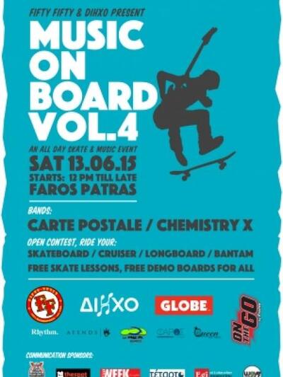 Τέλος να αναφέρουμε πως το Fifty Fifty και το Δίηχο είναι οι εμπνευστές και συνεχιστές του Music On Board. Φέτος προστέθηκε η GLOBE με την hardgoods συλλογή της, και το Frulite On The Go, που θα γεμίσει άφθονη φυσική ενέργεια όλους του fans!