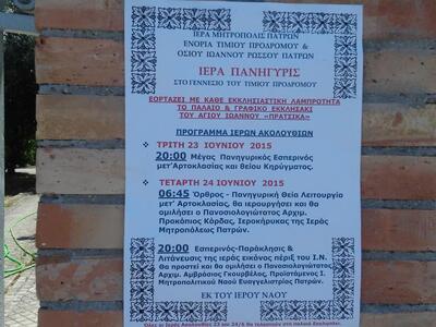 Η Κάτω Αχαΐα τιμά τον πολιούχο της Άγιο Ιωάννη , ενώ στην Πάτρα πανηγυρίζει το εκκλησάκι του Αγίου Ιωάννη στον Πράτσικα.