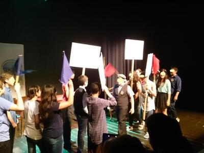 Οι μαθητές ξεδίπλωσαν το ταλέντο τους και πρόσφεραν πλούσιο γέλιο μέσα από ένα επίκαιρο και γνωστό έργο που σατιρίζει το φανατισμό και τη σφοδρή αντιπαλότητα που χωρίζει δεξιούς κι αριστερούς.