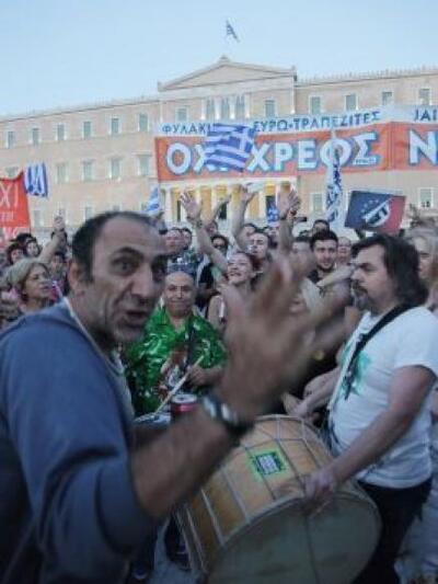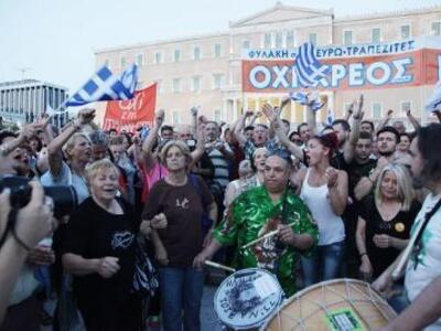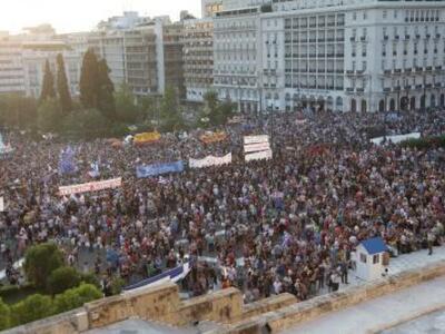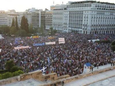 Συγκέντρωση κατά της λιτότητας και υπέρ του «όχι» στην πρόταση των θεσμών πραγματοποιήθηκε απόψε στην πλατεία Συντάγματος.