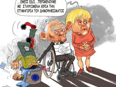 Αναμένουν το αποτέλεσμα του δημοψηφίσματος Σόιμπλε και Άνγκελα Μέρκελ με σταυρωμένα (;) χέρια. ΔΕΙΤΕ ΤΟ ΣΚΙΤΣΟ του Dranis.