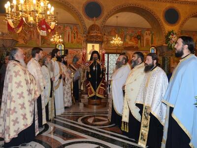 Όπως αναφέρει σχετική ανάρτηση του σάιτ της Μητρόπολης Πατρών, «τήν παραμονή τῆς ἑορτῆς, ἐτελέσθη στόν ἑορτάζοντα Ἱερό Ναό, ὁ μέγας Ἑσπερινός χοροστατοῦντος τοῦ Σεβασμιωτάτου Μητροπολίτου Πατρῶν κ.κ. Χρυσοστόμου καί συγχοροστατοῦντος τοῦ Θεοφιλεστάτου Ἐπισκόπου Κερνίτσης κ. Χρυσάνθου.