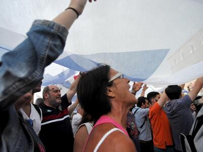 Συγκέντρωση με τίτλο "Μένουμε Ευρώπη" πρασγματοποιείται αυτή την ώρα στην πλατεία Συντάγματος.