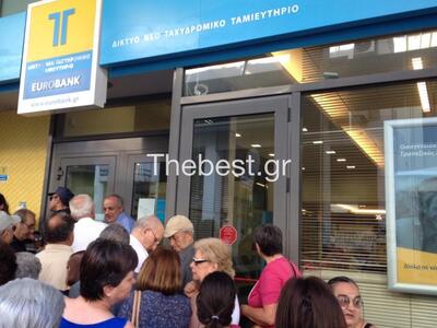 Μαζί με τους συνταξιούχους και κάποιοι νέοι οι οποίοι τις προηγούμενες μέρες δεν μπορούσαν να βγάλουν χρήματα, είτε γιατι δεν είχαν κάρτα και αναζητούσαν τρόπο να βγάλουν σήμερα, είτε λόγω άλλων προβλημάτων.