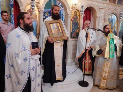 "Τά θυρανοίξια ἐτέλεσε ὁ Σεβασμιώτατος Μητροπολίτης Πατρῶν κ.κ. Χρυσόστομος μέ τήν συμμετοχή πολλῶν Ἱερέων καί πλήθους εὐσεβοῦς Λαοῦ.