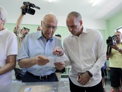 Μαζί με τον πατέρα του άσκησε το εκλογικό του δικαίωμα σήμερα ο υπουργός Οικονομικών Γιάνης Βαρουφάκης στο 2ο δημοτικό παλαιού Φαλήρου.