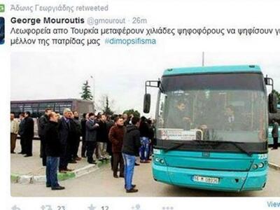 Σάλος έχει ξεσπάσει στο twitter εδώ και λίγη ώρα, καθώς ο στενός συνεργάτης του προέδρου της Νέας Δημοκρατίας Αντώνη Σαμαρά, Γιώργος Μουρούτης φέρεται να έκανε ένα tweet περί δήθεν μεταφοράς ψηφοφόρων από την Τουρκία για να ψηφίσουν στο δημοψήφισμα...
