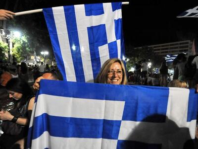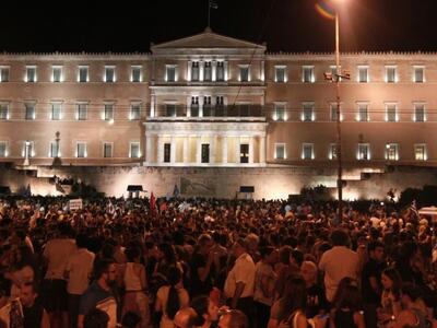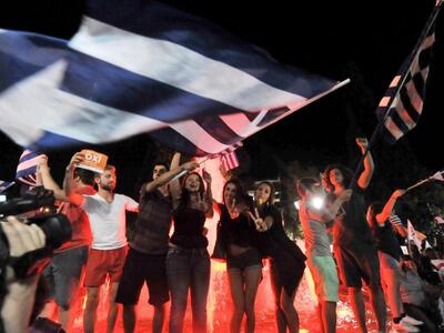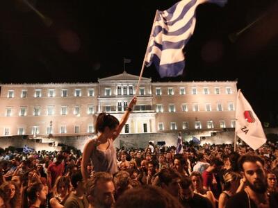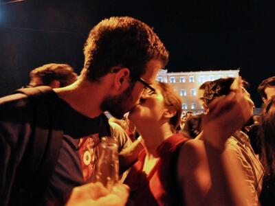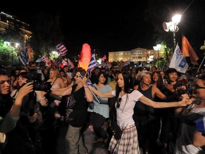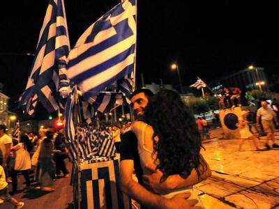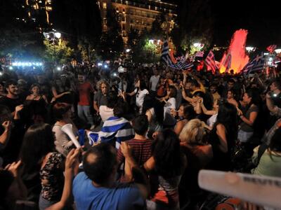 Το γλέντησαν με την ψυχή τους οι υποστηρικτές του όχι που είχαν συγκεντρωθεί από νωρίς το απόγευμα της Κυριακής στην πλατεία Συντάγματος.