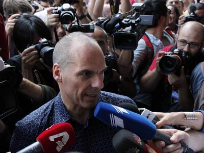 Πανδαιμόνιο επικράτησε κατά την αποχώρηση του παραιτηθέντα Υπουργού Οικονομικών Γιάνη Βαρουφάκη από το κτίριο του Υπουργειου. Δεκάδες δημοσιογράφοι και τηλεοπτικά συνεργεία είχαν κλείσει το πεζοδρόμιο και το δρόμο ενώ στην προσπάθειά τους να προσεγγίσουν για μια δήλωση τον κ. Βαρουφάκη έριξαν κάτω σχεδόν όλα τα σταθμευμενα δίκυκλα!