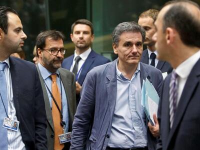 Ο Έλληνας Υπουργός Οικονομικών ανάμεσα στη σκληρή γραμμή του Προέδρου του Γιουρογκρουπ Γερούν Νταισενμπλουμ και του - για την ώρα- φιλικά διακείμενου εκπροσωπου της Γαλλικής πλευράς Υπουργού Οικονομικών της Γαλλίας Μισέλ Σαπέν...
