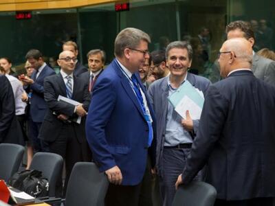 Πυκνές σημειώσεις σε ένα χαρτί από το σημειωματάριο του ξενοδοχείου κρατούσε μαζί με έναν γαλάζιο φάκελο ο Υπουργός Οικονομικών Ευκλείδης Τσακαλώτος μπαίνοντας νωρίς το μεσημέρι στην αίθουσα συνεδριάσεων του eurogroup.