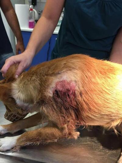 Σε άθλια κατάσταση, με φρικτούς πόνους και εξαιρετικά φοβισμένο ήταν ο σκύλος που κατάφεραν με κόπο να προσεγγίσουν συμπολίτες στην περιοχή δίπλα από το Ολύμπιο Θεραπευτήριο. Ο σκύλος εντοπίστηκε χθες να αιμορραγεί και τελικά οι εθελοντές κατάφεραν να τον μεταφέρουν στο κτηνιατρείο για αντιμετωπιστεί το σοβαρό διαμπερές τραύμα που έχει.