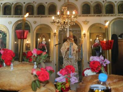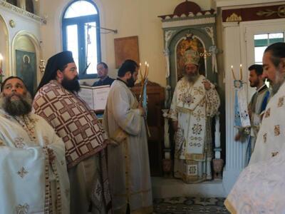 Στις ιερές ακολουθίες χοροστάτησε και ιερούργησε, σεπτή άδεια και εντολή του Τοποτηρητή της Μητροπόλεως Κεφαλληνίας, Μητροπολίτου Ηλίας κ. Γερμανού, ο Θεοφιλέστατος Επίσκοπος Κερνίτσης, Βοηθός Μητροπολίτου Πατρών κ. Χρύσανθος.