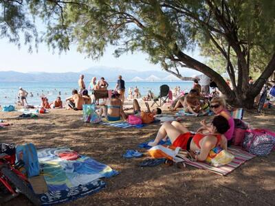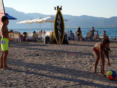 Παραλία Βραχνεΐκων, Πλάζ, Τζάκι, Δάφνες, Καστελόκαμπος, Πόρτο Ρίο, Ακταίον, Αγιος Βασίλης, Ψαθόπυργος, Ροδινή, Δρέπανο, Λαμπίρι, γεμίζουν απο τους λουόμενους που μετά τις 13.00 το μεσημέρι σπεύδουν, με δικές τους ομπρέλες ή όχι πάνω στην άμμο ή τις ξαπλώστρες και κάνουν ηλιοθεραπεία αλλά και ατελείωτες βουτιές.
