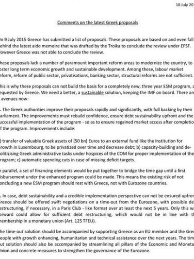 Πάντως, ο ανταποκριτής του Skynews στις Βρυξέλλες δηλώνει ότι το έγγραφο Σόιμπλε είναι μάλλον για εσωτερική κατανάλωση.